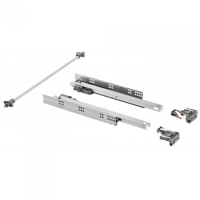 Направляющая скрытого монтажа Modern Slide Pro push to open L-450 полного выдвижения для деревянных ящиков с выталкивателем (Push to open) - механизмы, используемые в различных мебельных конструкциях с выдвижными ящиками. Характерная особенность направляющих Модерн Слайд - скрытый монтаж, когда их установка осуществляется не на боковины ящика, а под его дно.
